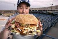 It’s called the Fifth Third Burger. Named after both the stadium that created this intense culinary delight, and the five one-third pound hamburger patties that make up this delightful piece of art.
