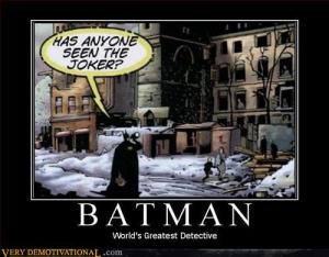Life in General >Batman Demotivational > A little something that I came across on verydemotivational.com in tribute to the Dark Knight. Share this: Click to print (Opens in new window) Print Click to email a link to a friend (Opens in new window) Email Click to share on Facebook (Opens in new window) Facebook Click to share on X (Opens in new window) X Like Loading... Related Published by Pastor Swish I'm a United Methodist pastor in Vincennes, Indiana. This blog is just about ministry, life and other stuff. View all posts by Pastor Swish