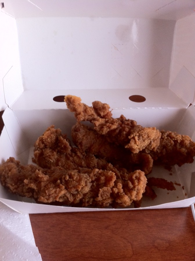 A while back, Hardee’s introduced their hand-breaded chicken tenders. Take a look at the picture below. They look nice and tasty, don’t they? Golden fried, juicy, deliciousness.